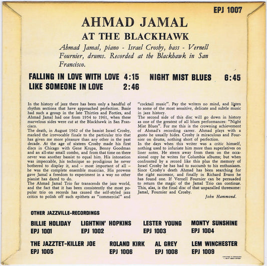 Ahmad Jamal - At The Blackhawk - Denmark 7" 0 - VG+Regular price £20.00 GBPRegular priceUnit price / per-