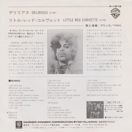 プリンス* = Prince - デリリアス = Delirious - Japan 7" 1983 - NM or M-Regular price £50.00 GBPRegular priceUnit price / per