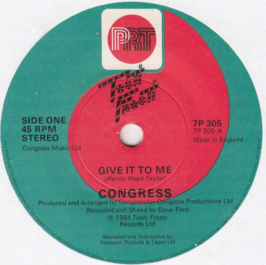 Congress - Give It To Me (7") UK 1984 NM or M-