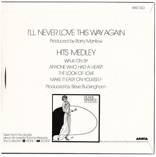 Dionne Warwick - I'll Never Love This Way Again (7") UK 1983 VG+
