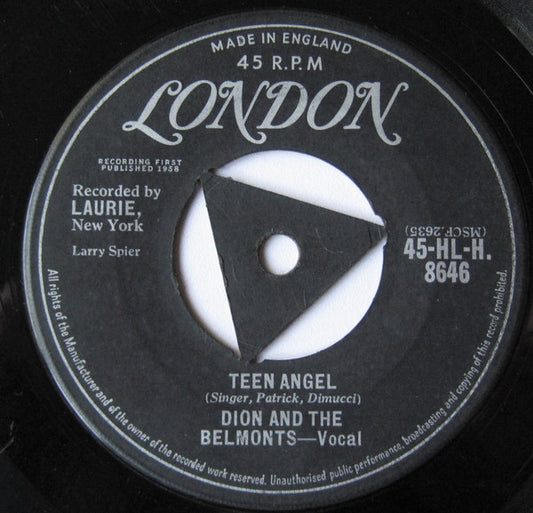 Dion & The Belmonts - Teen Angel / I Wonder Why (7", Single) UK 1958 VG+
