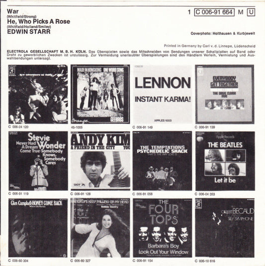 Edwin Starr - War / He Who Picks A Rose (7", Single, Mono) Germany 1970 VG+