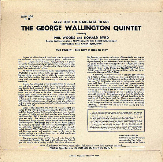 George Wallington Quintet With Phil Woods, Donald Byrd - Jazz For The Carriage Trade, Vol. 1 - Sweden 7" 1957 - VG+