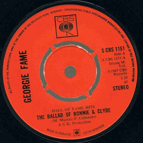 Georgie Fame - The Ballad Of Bonnie & Clyde / Seventh Son (7", Single) UK 1973 VG+