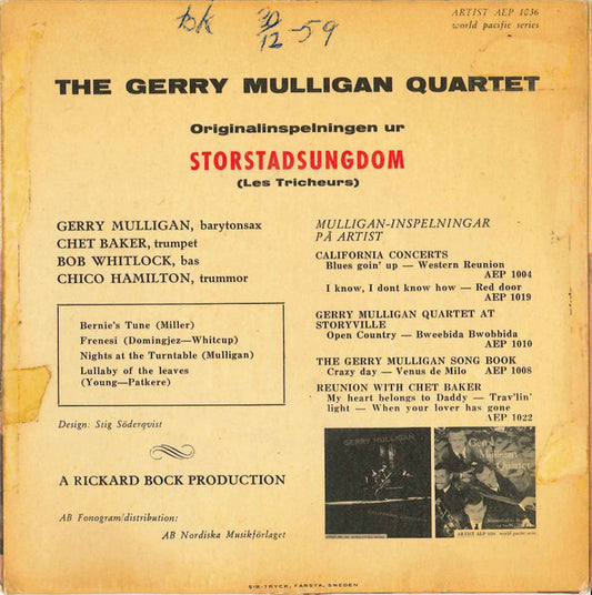 Gerry Mulligan Quartet - Storstadsungdom "Les Tricheurs" - Sweden 7" 1959 - VG+