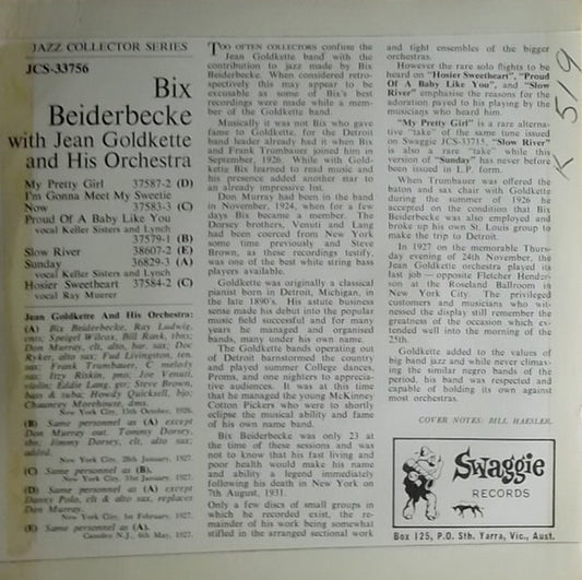 Jean Goldkette And His Orchestra - Bix Beiderbecke With Jean Goldkette And His Orchestra - Australia 7" 0 - VG+