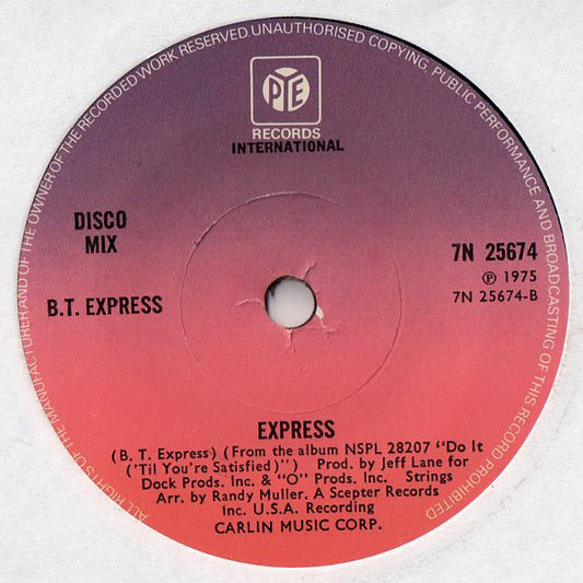 B.T. Express - Express (7", Single, Sol) UK 1975 VG+Regular price £2.38 GBPRegular priceUnit price / per-