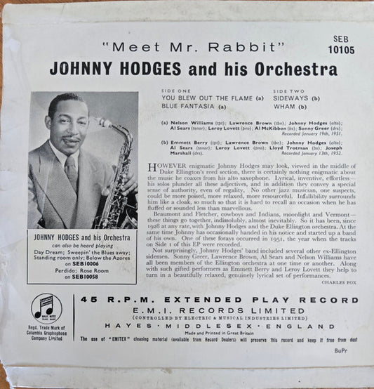 Johnny Hodges And His Orchestra - Meet Mr. Rabbit - UK 7" 1959 - VG+
