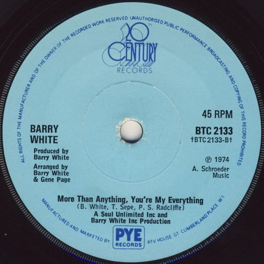 Barry White - You're The First, The Last, My Everything (7", Single, Sol) UK 1974 VG+Regular price £4.75 GBPRegular priceUnit price / per-