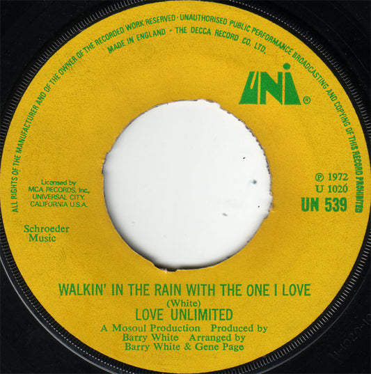 Love Unlimited - Walkin' In The Rain With The One I Love (7", Single) UK 1972 VG+