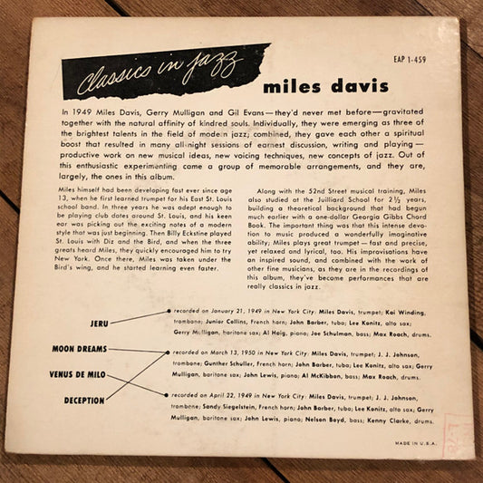 Miles Davis - Classics In Jazz Part 1 - US 7" 1954 - VG+