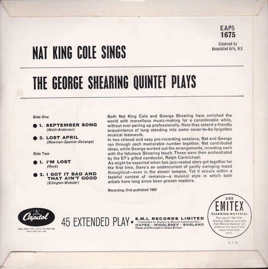 Nat King Cole / George Shearing - Nat King Cole Sings / George Shearing Plays - UK 7" 1962 - VG+