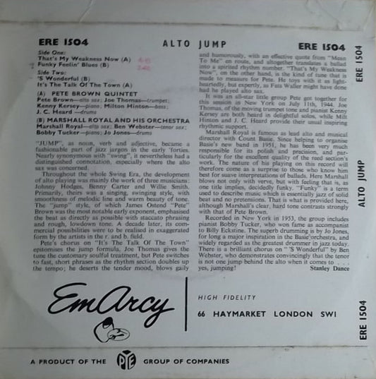 Pete Brown , Marshall Royal - Alto Jump - UK 7" 1956 - VG+