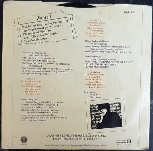 Phil Lynott - Dear Miss Lonely Hearts (7", Single) UK 1980 VG+