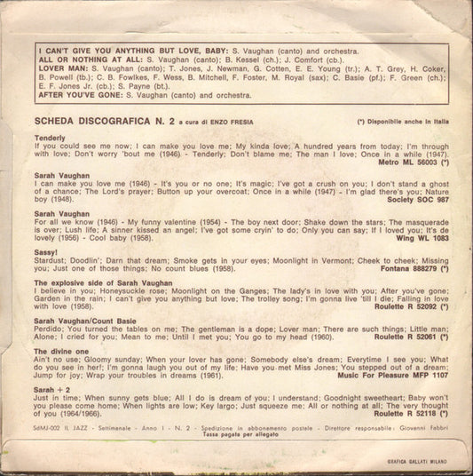 Sarah Vaughan - Sarah Vaughan - Italy 7" 1969 - VG+