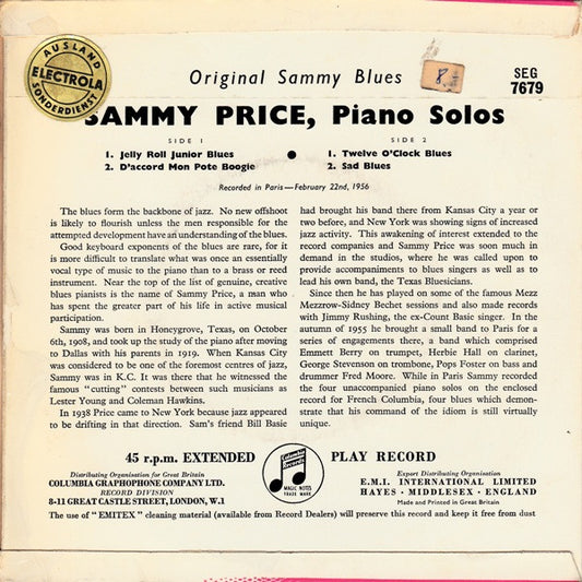 Sammy Price - Original Sammy Blues - UK 7" 1956 - VG+