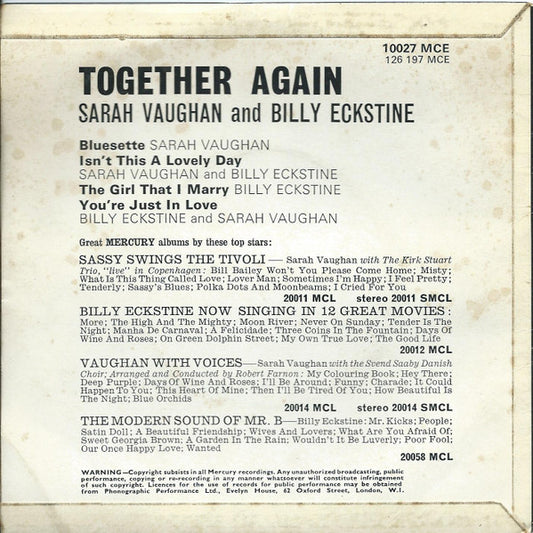 Sarah Vaughan And Billy Eckstine - Together Again - UK 7" 1965 - VG+