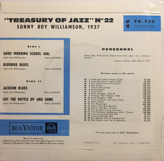 Sonny Boy Williamson - Treasury Of Jazz N° 22 (7", EP) France 1962 NM or M-