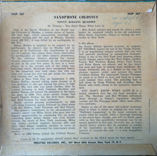 Sonny Rollins - Saxophone Colossus - Sweden 7" 1957 - VG+