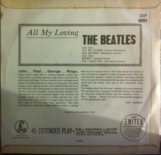 The Beatles - All My Loving (7", EP, RP) UK 1964 VG+