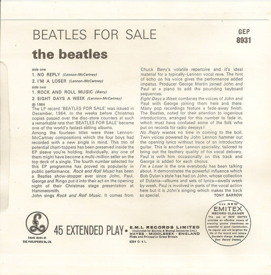 The Beatles - Beatles For Sale (7", EP, Mono, RE) UK 1981 NM or M-