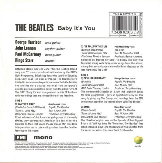 The Beatles - Baby It's You (7", EP, Mono, RM) Europe 1995 NM or M-