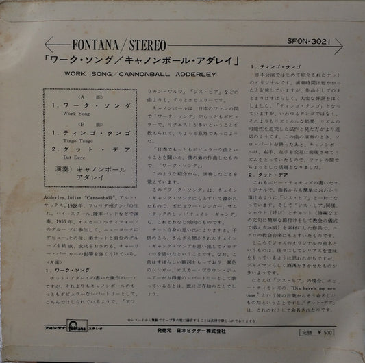 The Cannonball Adderley Quintet, Cannonball Adderley Sextet - Work Song - Japan 7" 0 - VG+