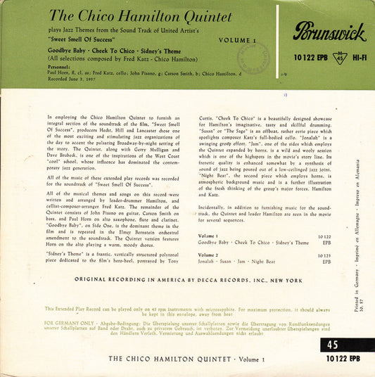 The Chico Hamilton Quintet - Sweet Smell Of Success Vol. 1 - Germany 7" 1957 - VG+