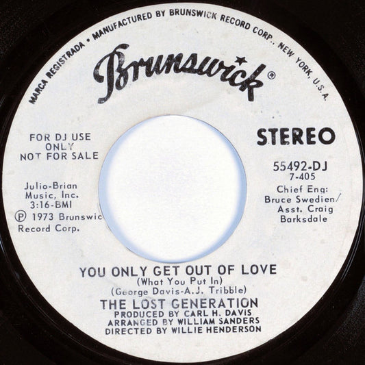 The Lost Generation - Pretty Little Angel Eyes / You Only Get Out Of Love (What You Put In) (7", Promo) US 1973 NM or M-