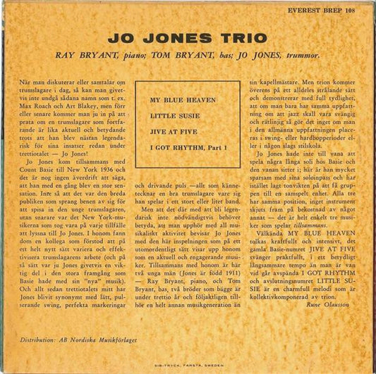 The Jo Jones Trio - Jo Jones Trio - Scandinavia 7" 0 - VG+