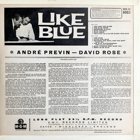 André Previn And David Rose - Like Blue (LP) UK 1960 VG+