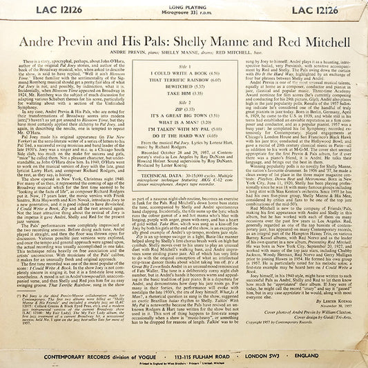 André Previn & His Pals - Modern Jazz Performances Of Songs From Pal Joey - UK LP 1958 - VG+