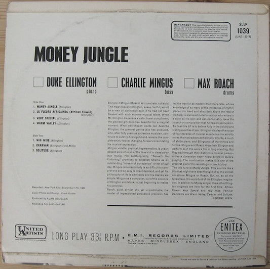 Duke Ellington • Charles Mingus • Max Roach - Money Jungle (LP, Album) UK 1963 VG+
