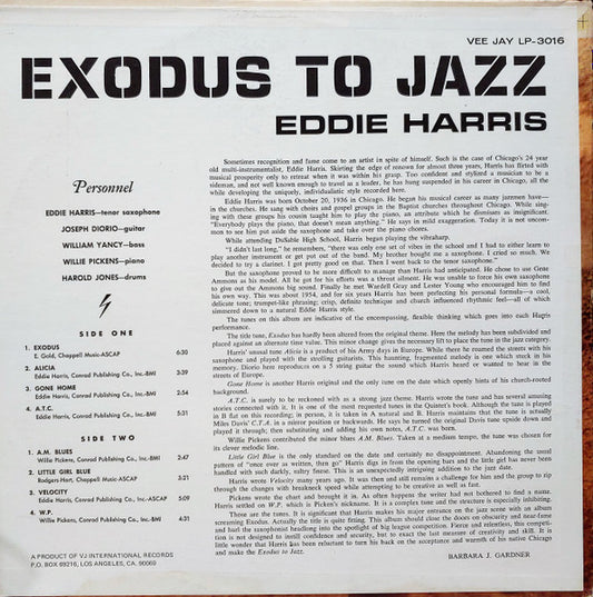 Eddie Harris - Exodus To Jazz (LP, Album, RE) US 1974 VG+