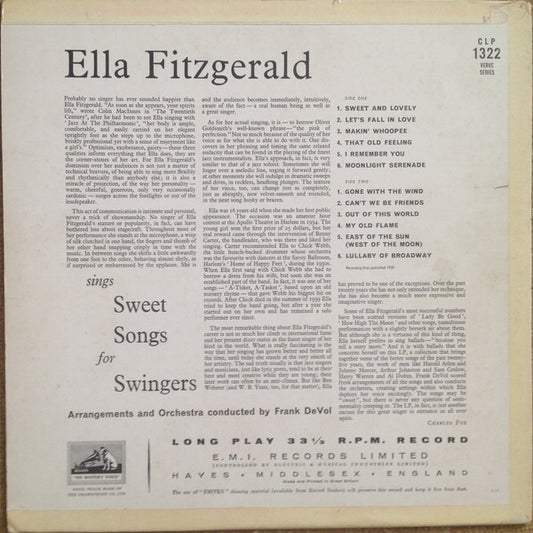 Ella Fitzgerald - Ella Fitzgerald Sings Sweet Songs For Swingers (LP, Album) UK 1959 VG+