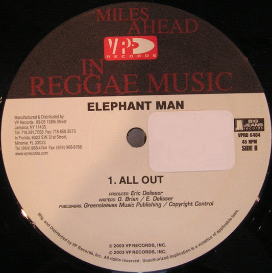 Elephant Man - Pon De River, Pon De Bank / All Out (12") US 2003 VG+