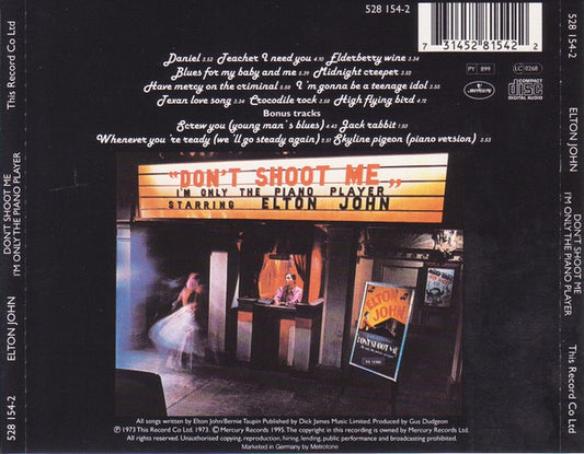 Elton John - Don't Shoot Me I'm Only The Piano Player (CD, Album, RM) Europe 1995 VG+