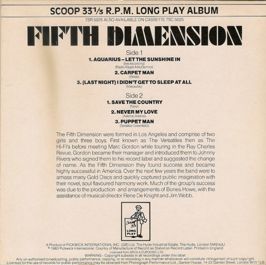 Fifth Dimension* - Fifth Dimension (7", Album, Comp) UK 1983 NM or M-