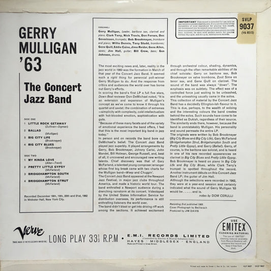 Gerry Mulligan & The Concert Jazz Band - Gerry Mulligan '63 - UK LP 1963 - NM or M-
