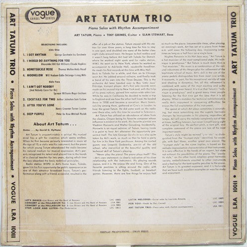 Art Tatum Trio - Piano Solos With Rhythm Accompaniment (10") South Africa VG