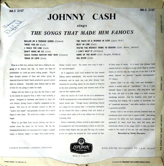 Johnny Cash - Sings The Songs That Made Him Famous (LP, Album, Mono) UK 1959 NM or M-