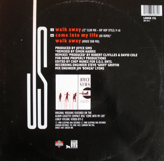 Joyce Sims - Walk Away / Come Into My Life (UK Remix) (12", Single) UK 1988 VG+
