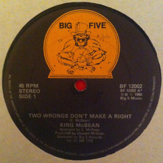 King Mcbean - Two Wrongs Don't Make A Right (12") UK 1980 VG