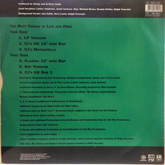 Luther Vandross & Janet Jackson With Special Guests Bell Biv Devoe & Ralph Tresvant - The Best Things In Life Are Free (12", EP) UK & Europe 1992 VG+