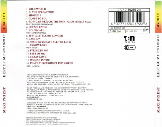 Maxi Priest - Best Of Me (CD, Comp, RE, RP, 2nd) Europe 1992 VG+