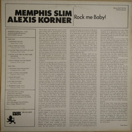 Memphis Slim, Alexis Korner - Rock Me Baby! (LP, Album, Mono, RE) Europe NM or M-