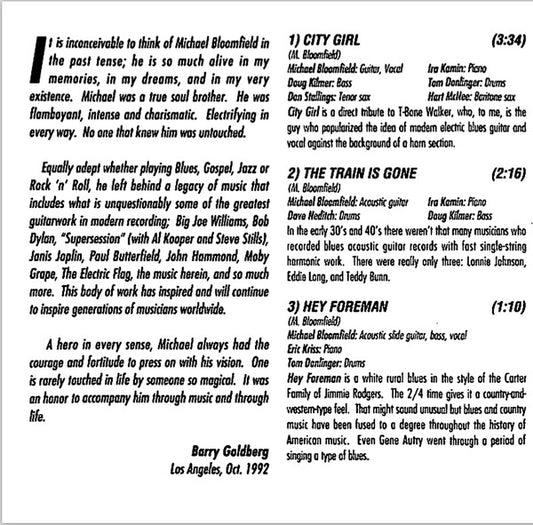 Mike Bloomfield - Blues Gospel & Ragtime Guitar Instrumentals (CD, Album) US 1993 VG+