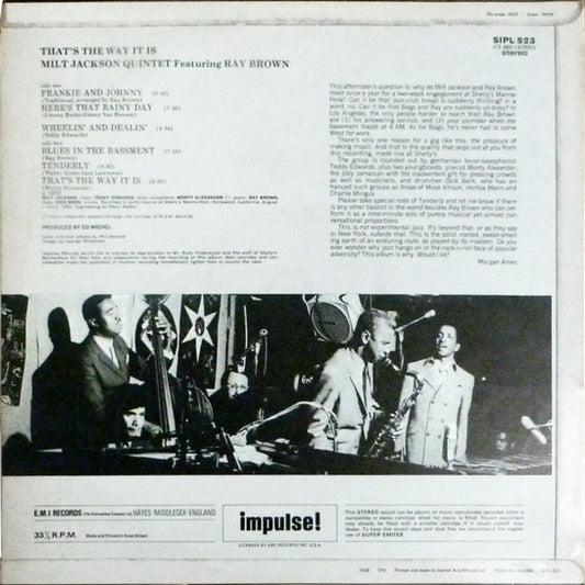 Milt Jackson Quintet Featuring Ray Brown - That's The Way It Is - UK LP 1970 - NM or M-