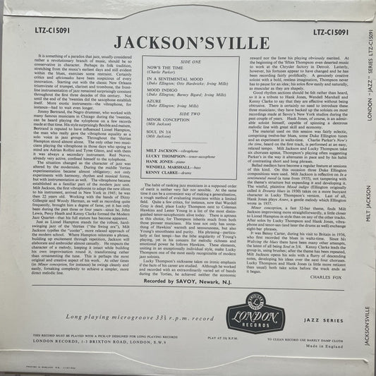 Milt Jackson - Jackson'sville - UK LP 1957 - NM or M-