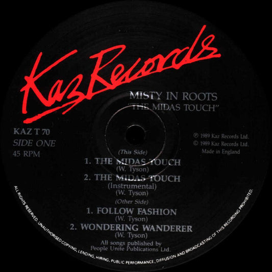 Misty In Roots - The Midas Touch (12") UK 1989 NM or M-